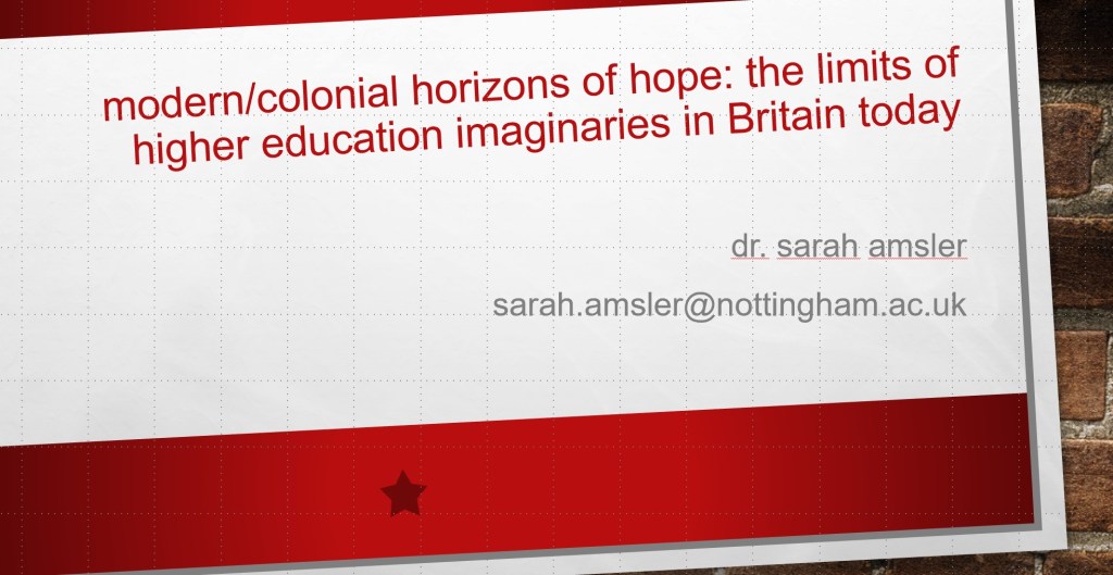 modern/colonial horizons of hope: the limits of higher education imaginaries in Britain today